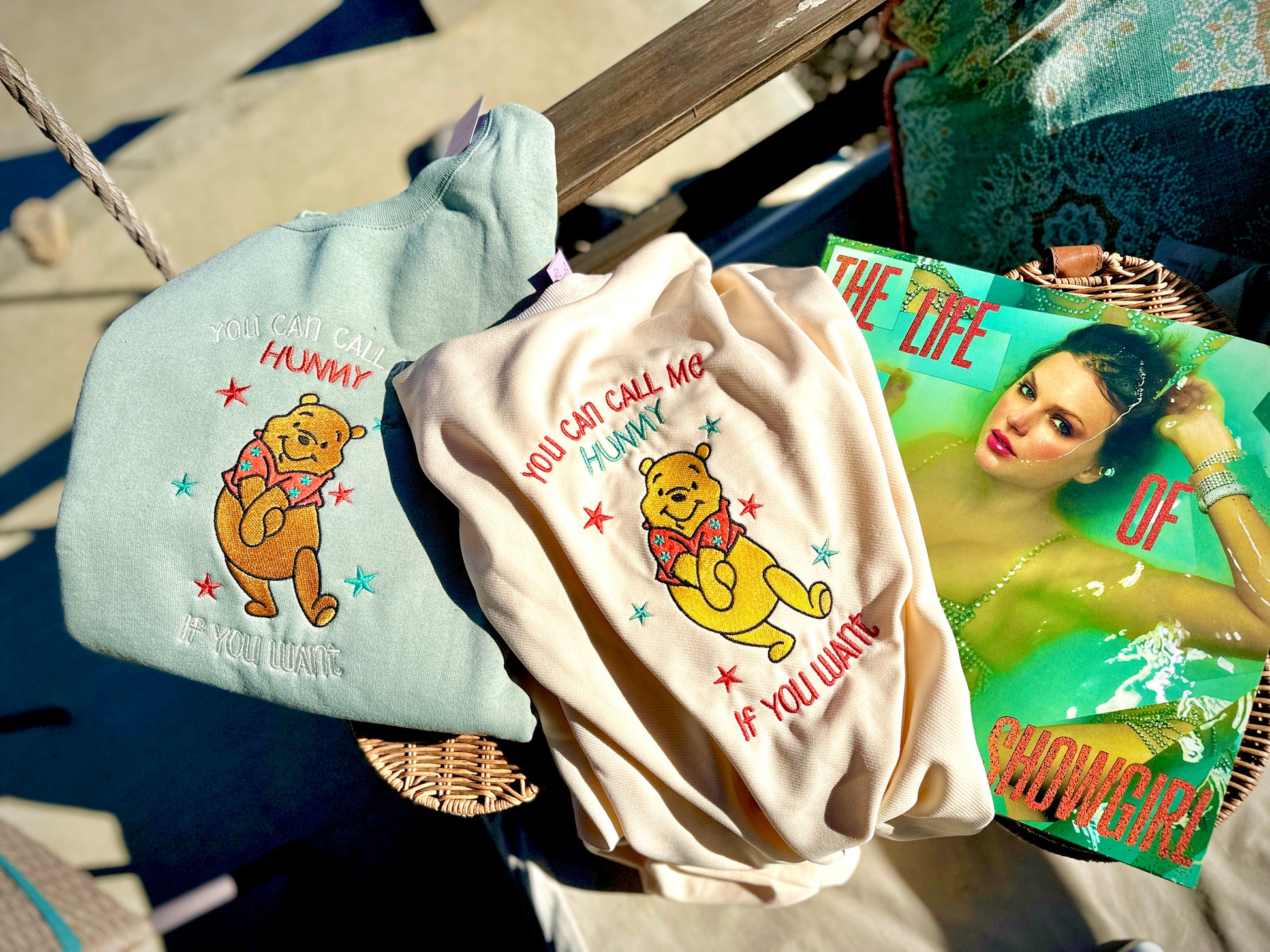 Our viral Taylor Swift Pooh Bear collab, this time without the glitter jacket (will be the orange thread with the stars instead).